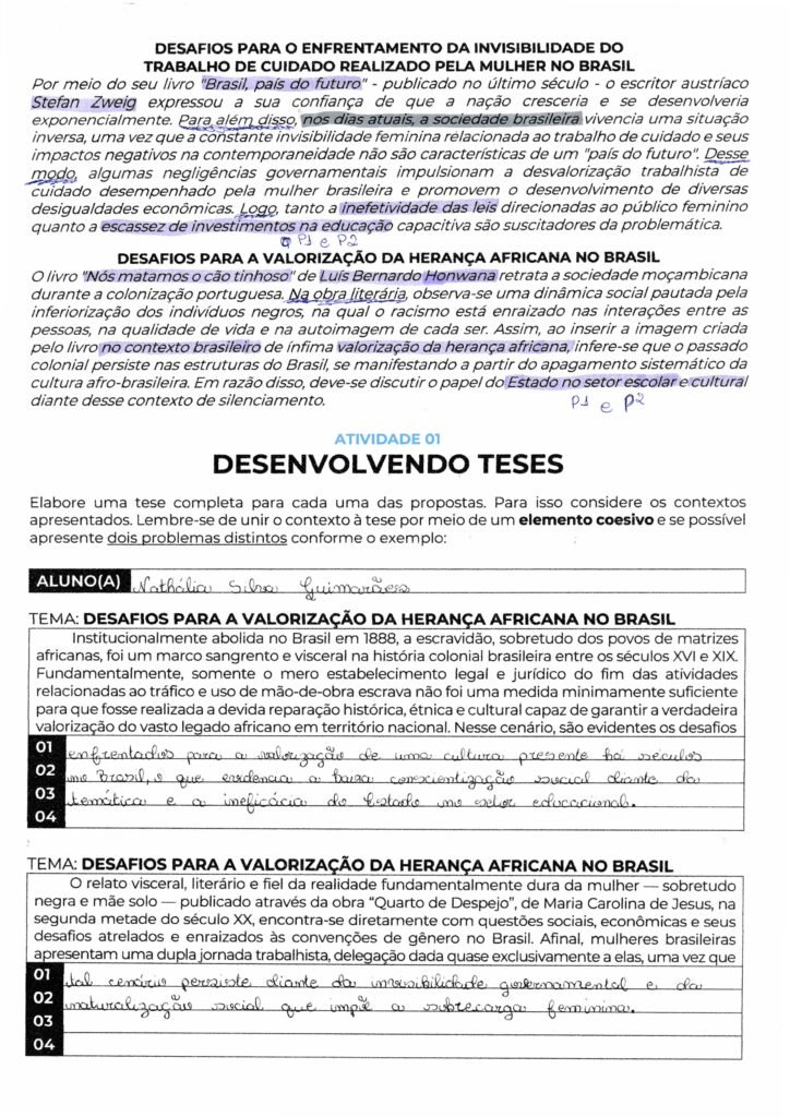 Sua caligrafia é muito legível e o uso de conectivos como “Fora da ficção” e “Dessa forma” garante a fluidez necessária para a nota máxima nas competências de coesão.