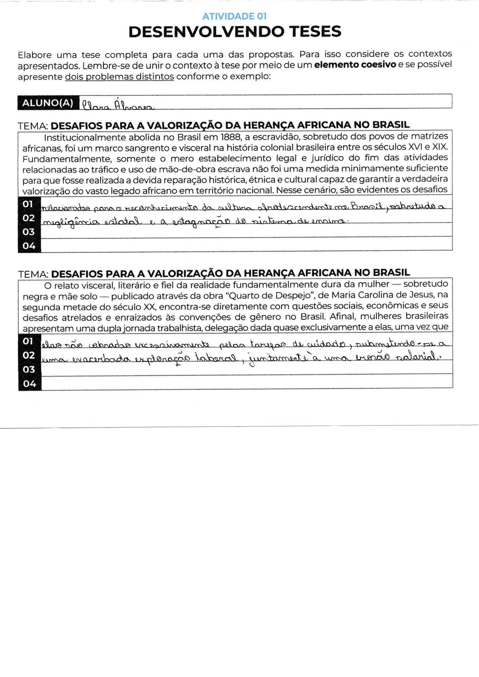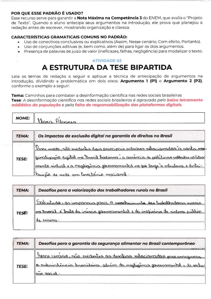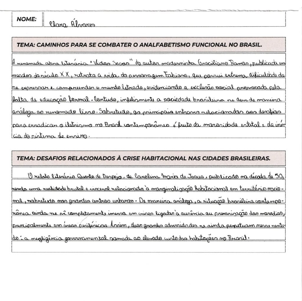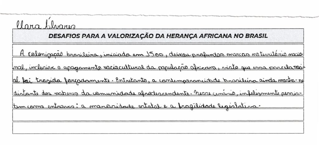 Sua caligrafia é impecável e o uso de conectivos como “Contudo” e “Sobretudo” garante a fluidez necessária para a nota máxima.