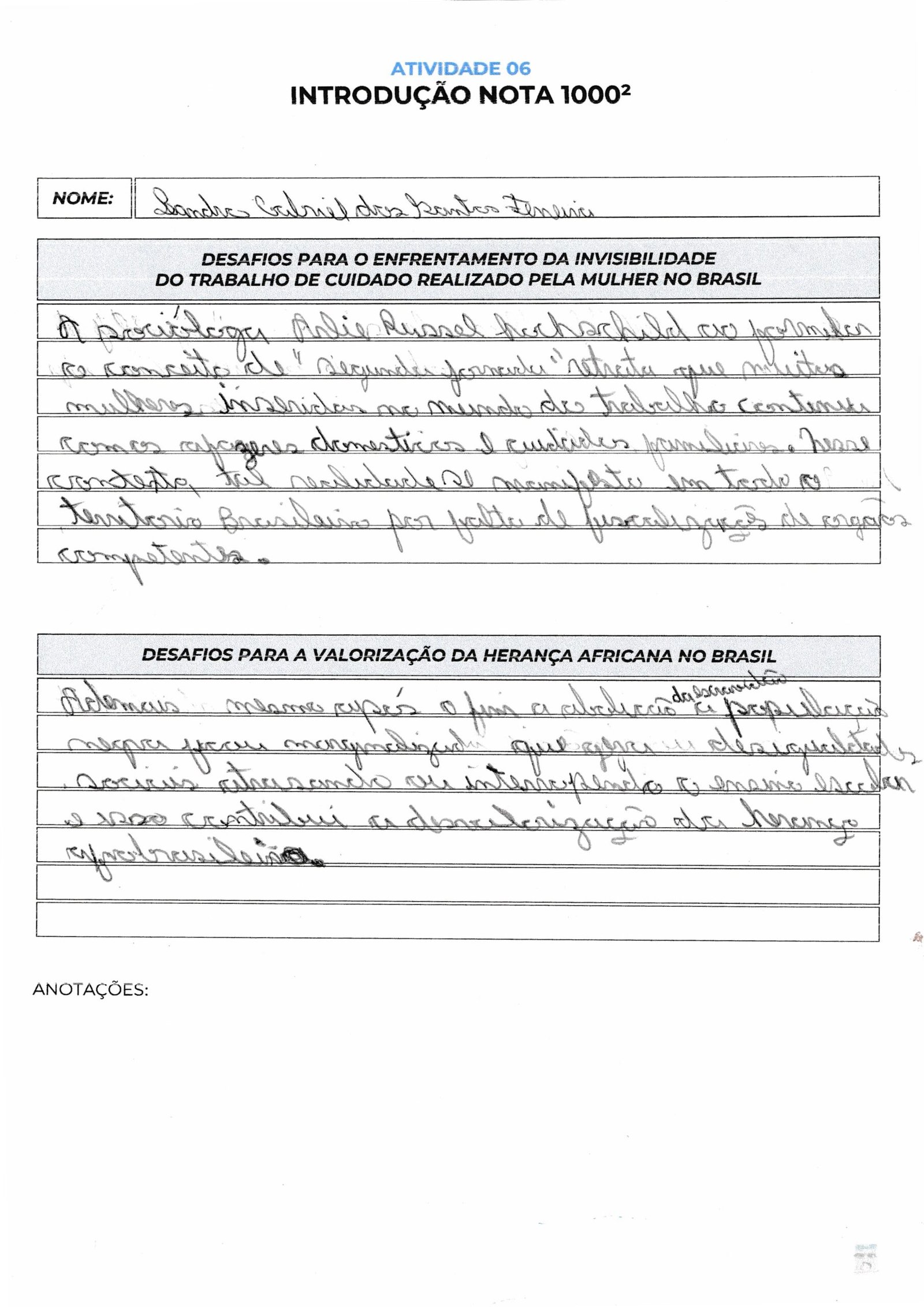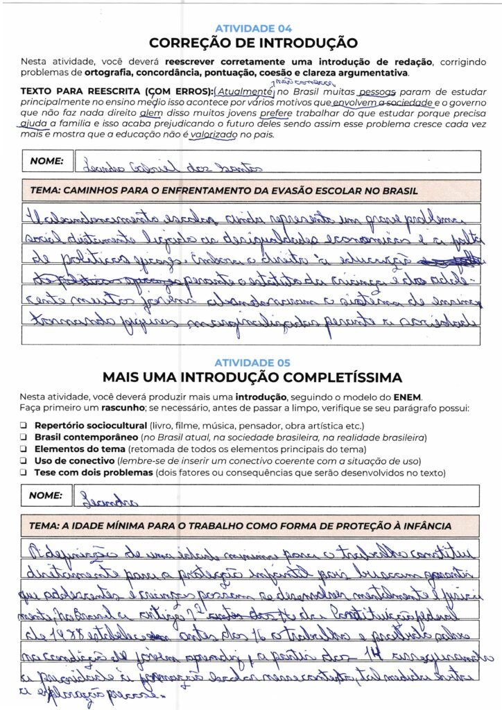 Leandro Gabriel, ao analisar sua atividade, notei que você apresenta boas ideias centrais, mas precisamos ajustar pontos cruciais de estrutura e escrita para o modelo ENEM. Primeiramente, é fundamental que você preste mais atenção às explicações em aula, pois alguns erros cometidos são estruturais.