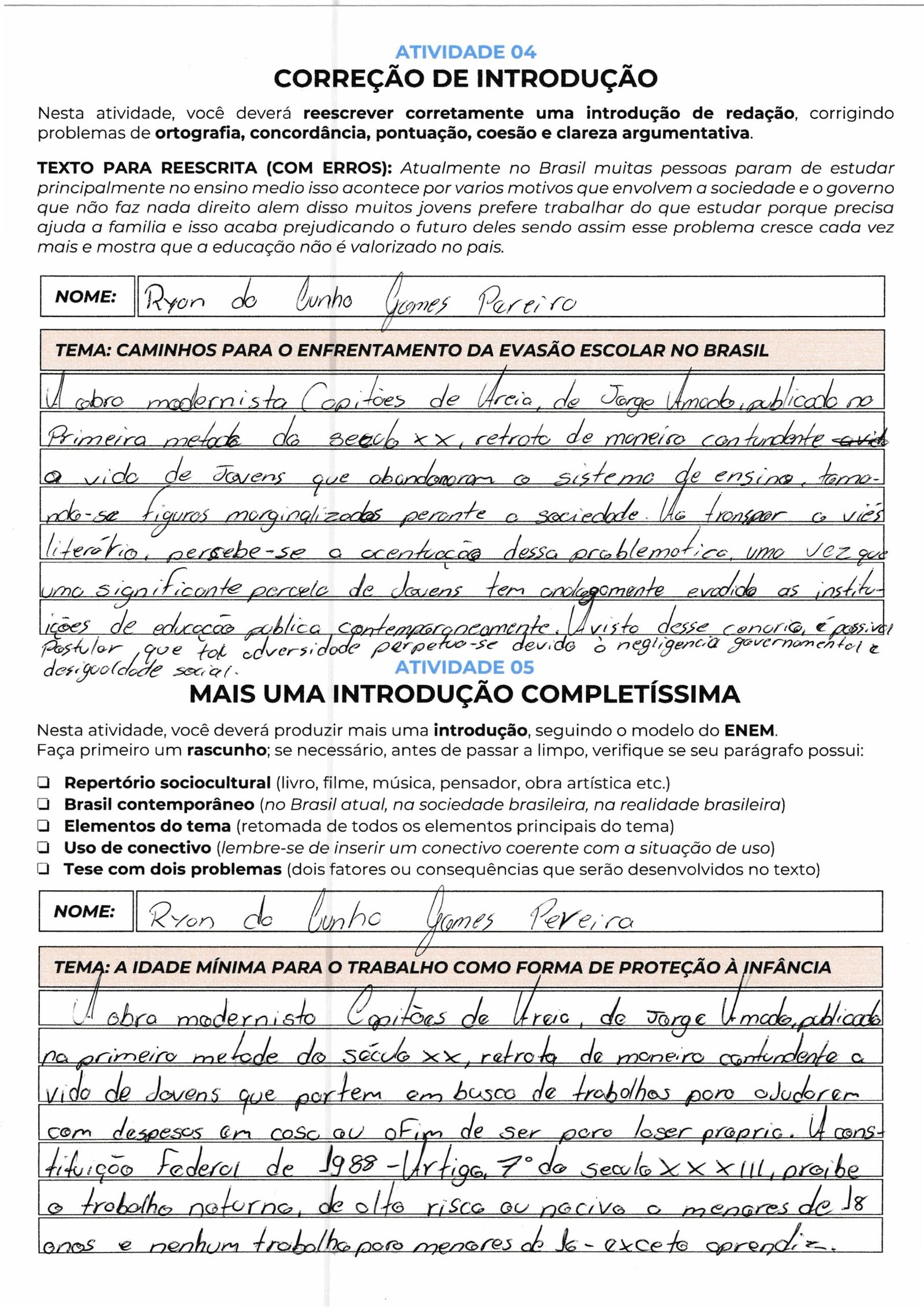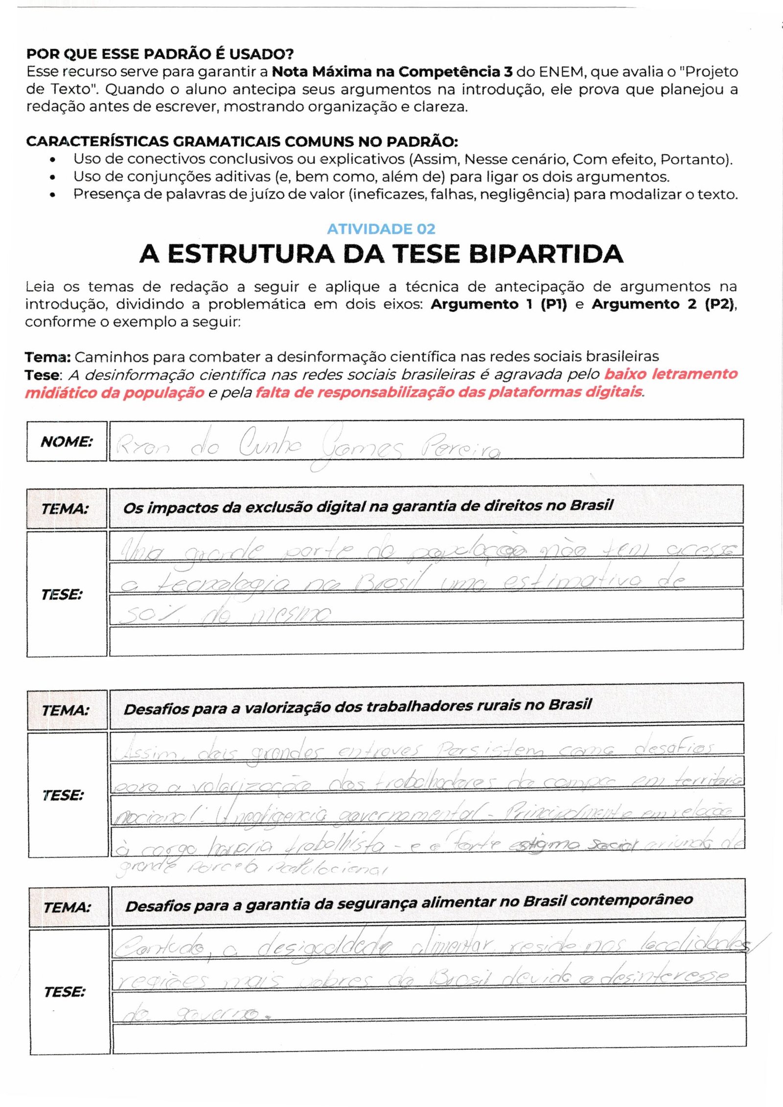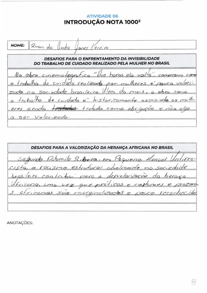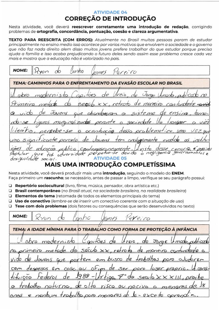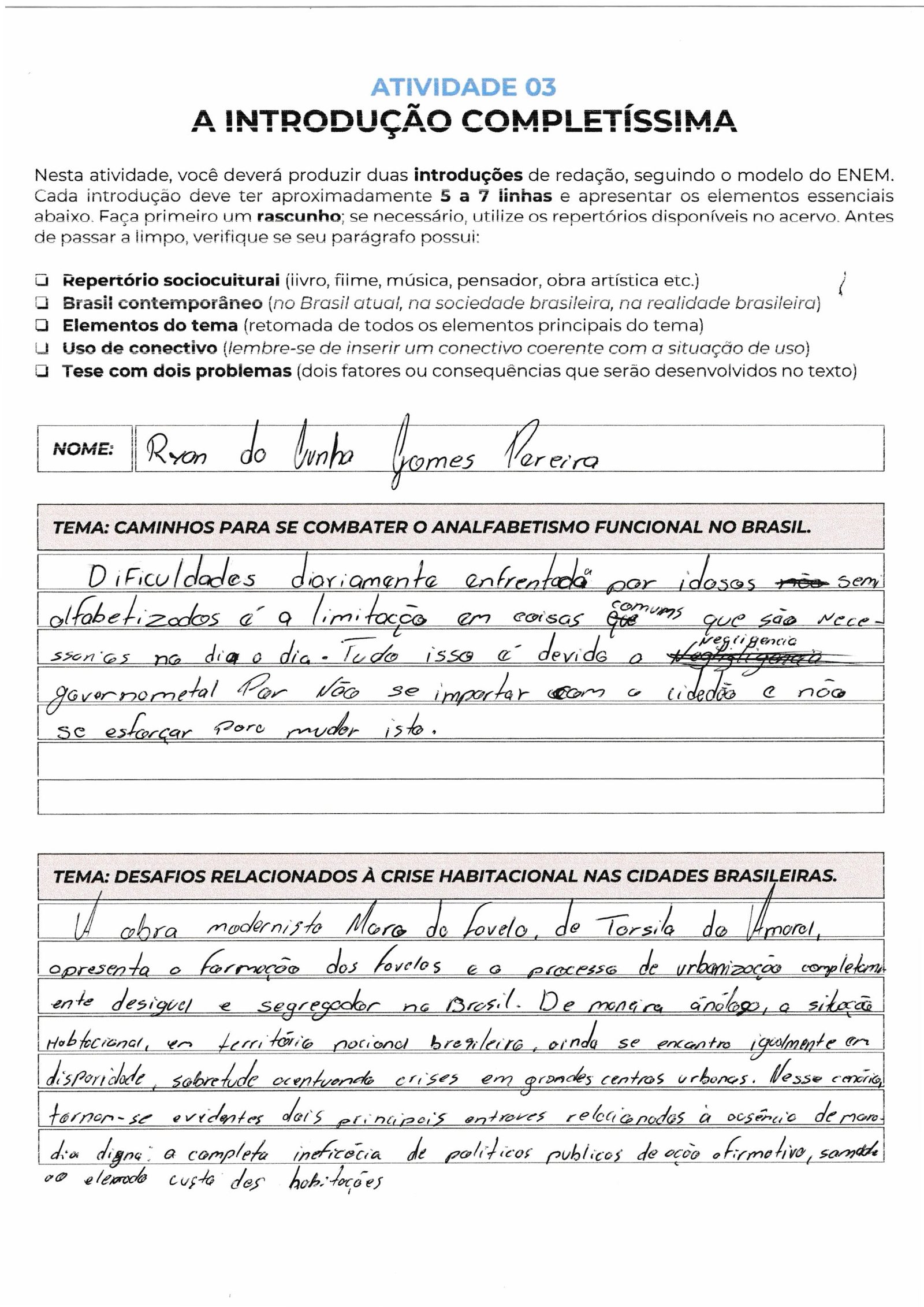 Ryan da Cunha Gomes Pereira, seu parágrafo aborda uma questão muito relevante: a limitação dos idosos semialfabetizados no cotidiano. No entanto, para atender aos critérios do ENEM, é fundamental que você refaça o rascunho e passe a limpo, pois o texto atual carece da estrutura básica de uma introdução dissertativa.