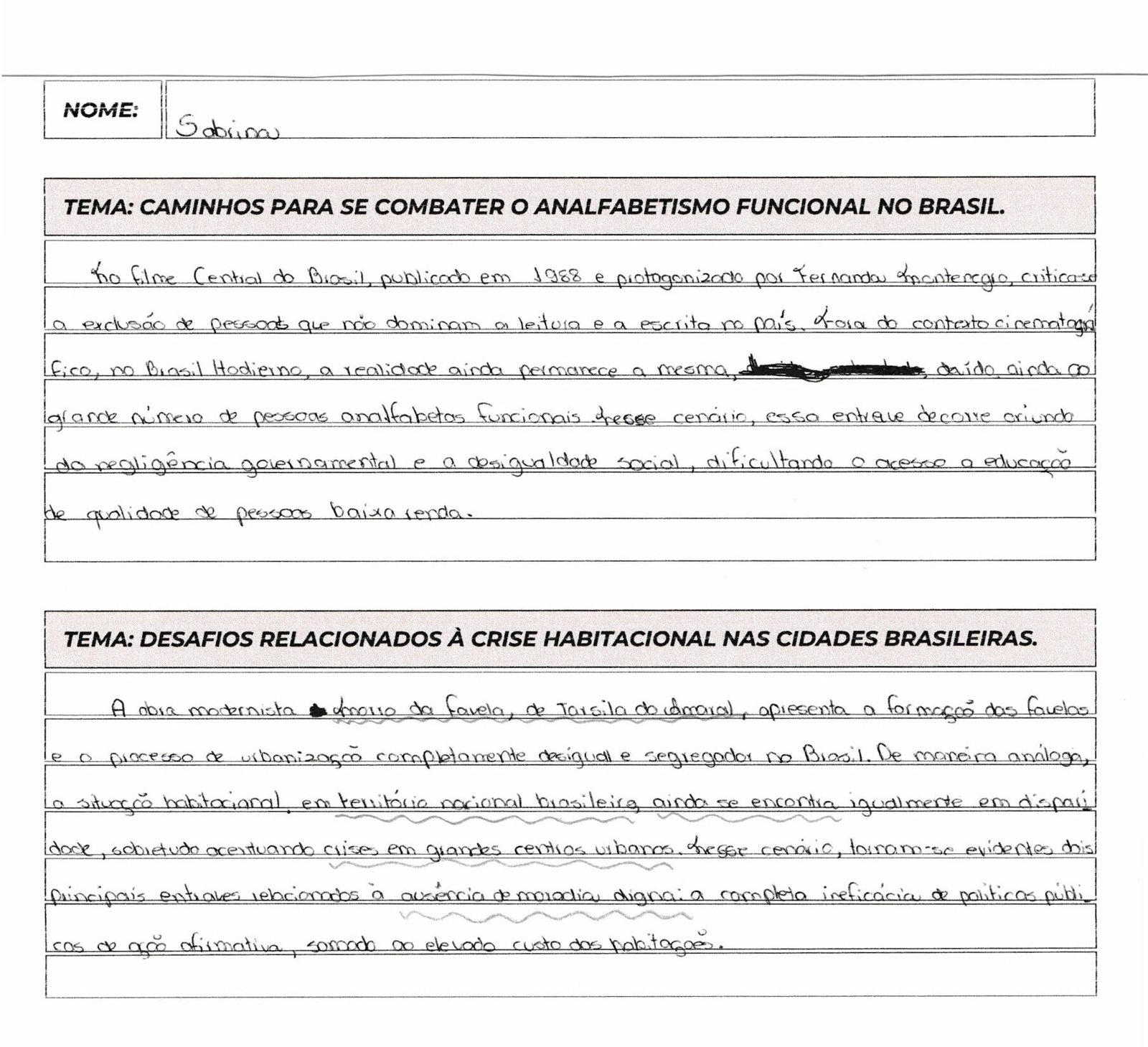 Para qualificar sua escrita conforme a orientação para o grupo, em vez de citar apenas “desigualdade social”, utilize a expressão indivíduos em situação de vulnerabilidade socioeconômica para descrever o contexto que permite a persistência do trabalho infantil. Para elevar a nota na Competência 1, atente-se rigorosamente à acentuação e à regência: em “À vista desse cenário” e “devido à negligência“, o uso do acento grave é obrigatório. Além disso, revise a acentuação em palavras como Constituição, proibição, insalubre e contemporâneo.