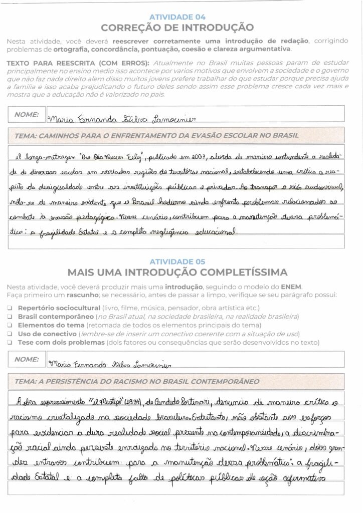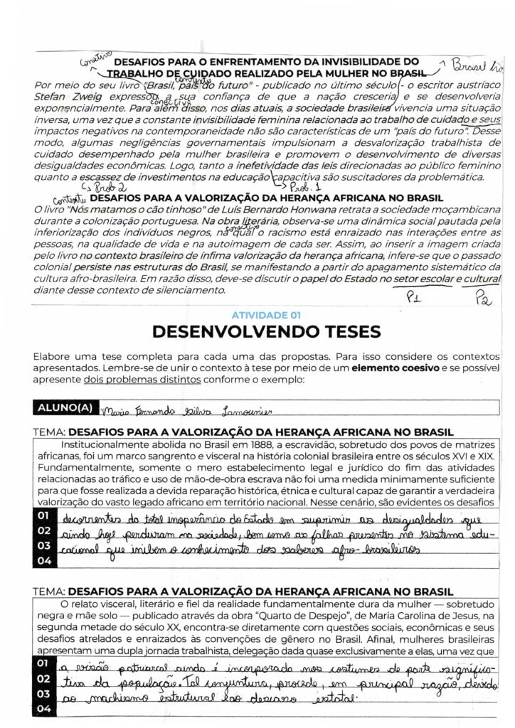 No trecho final, a concordância de “enraizado” deveria ser no feminino (enraizada) para concordar com “discriminação racial”. Sua coesão é um ponto forte, com o uso de conectivos sofisticados como “Não obstante” e “Nesse cenário“. O projeto de texto está muito bem definido.