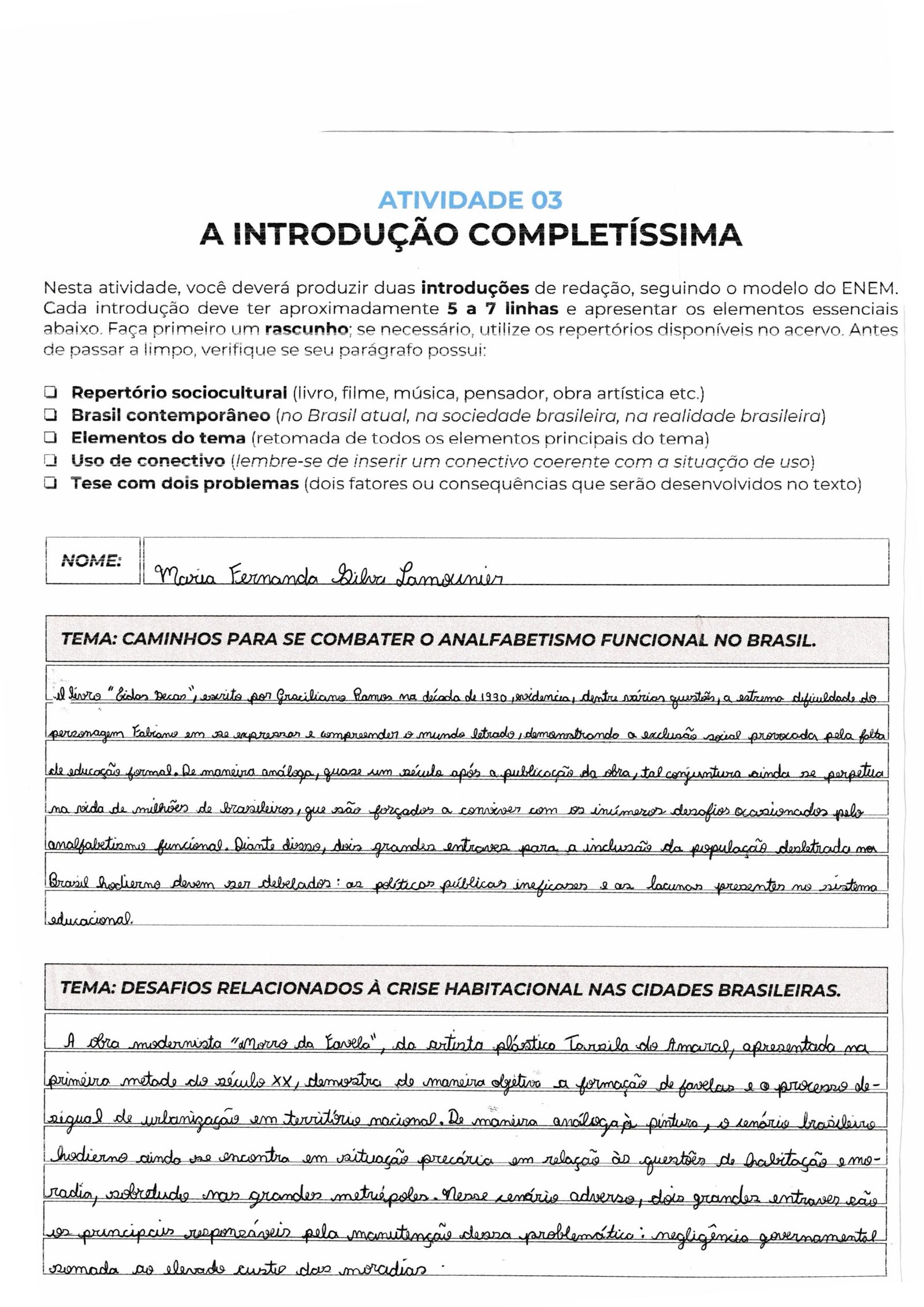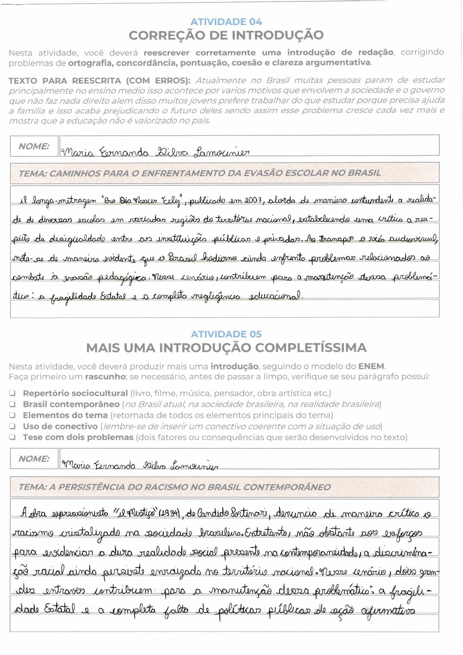 Maria Fernanda, sua introdução está excelente e demonstra um vocabulário muito refinado. O uso da obra “O Mestiço”, de Cândido Portinari, é um repertório legitimado e muito bem articulado com a tese de que o racismo está “cristalizado” e “enraizado” no Brasil. Sua tese bipartida está clara, focando na fragilidade estatal e na falta de políticas de ação afirmativa.